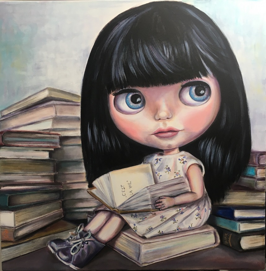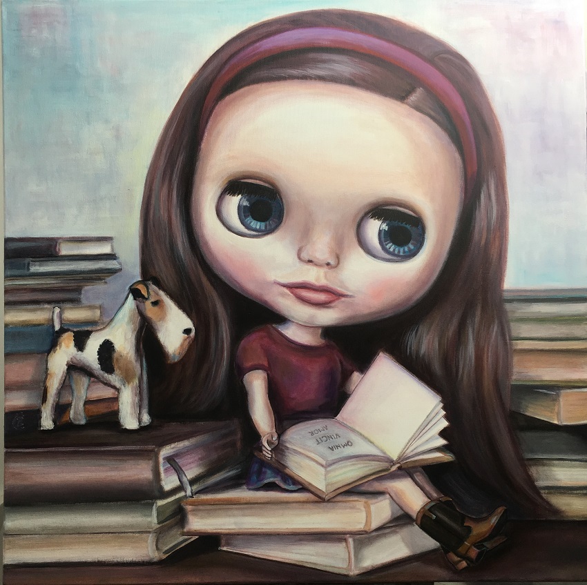 Vivi v knižnici, akryl na plátne, 80 x 80 cm